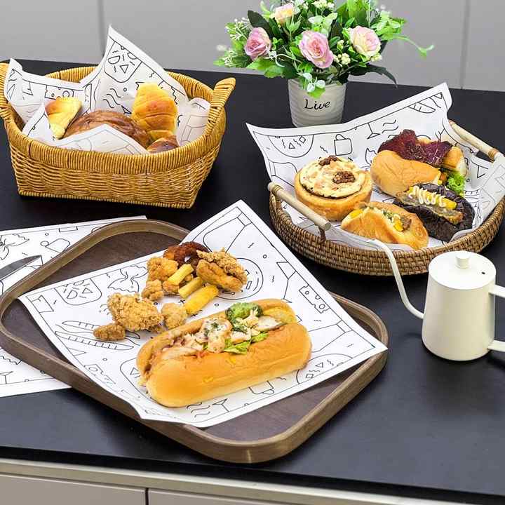 Custom Logo Eco-Friendly Recyclable Food Grade Greaseproof Paper Bread Wrapping Paper for Bakery & Container Tray Liners