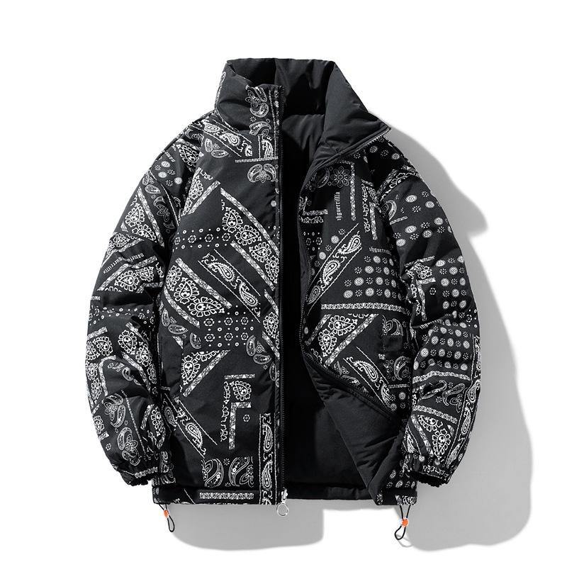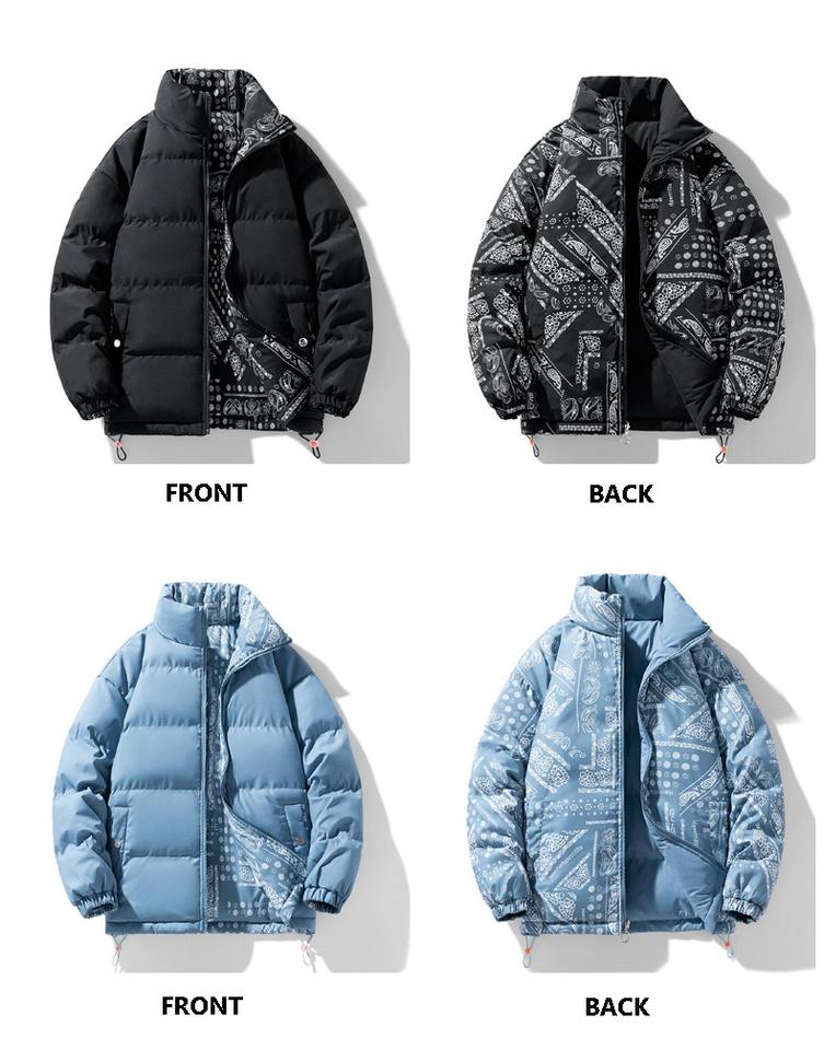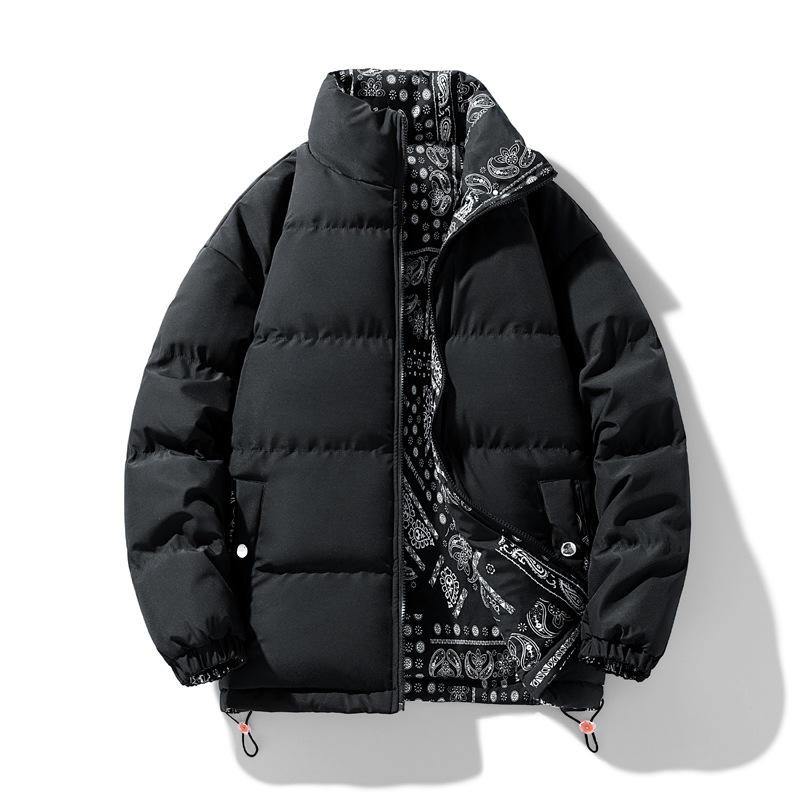 Custom Logo Eco Friendly Reversible Black Puffer Jacket For Men And Women With Stand Collar Winter Wear