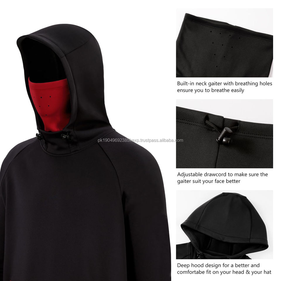 Custom Logo Embroidered Double Hood Ninja Double Layer Pullover Plus Size Heavy Full Zip Balaclava Hoodie Mens basics Hoodie