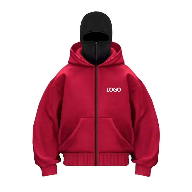 Custom Logo Embroidered Double Hood Ninja Double Layer Pullover Plus Size Heavy Full Zip Balaclava Hoodie Mens Gangster Hoodie