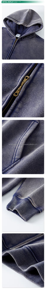 Custom Logo Embroidered Puff Printing Luxury Oversized Black Heavyweight Cotton Stone Acid Wash Full Zip up Hoodie for Men
