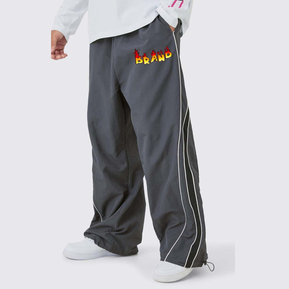 Custom Logo Embroidery 100% Polyester Anti-Wrinkle Men's Heavyweight Drawstring Jogger Custom Washed Loose Wide Leg Sweatpants