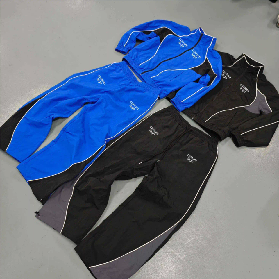 Custom Logo Embroidery Casual Spring Windproof Unisex Track Jacket and Pants Set with Reflective Stripe 2 Piece Windbreaker Sets