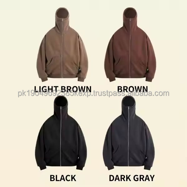 Custom Logo Embroidery Plain Long Sleeve Balaclava and Ninja Hoodie Cotton Breathable Full Zip up Hoodie For Men