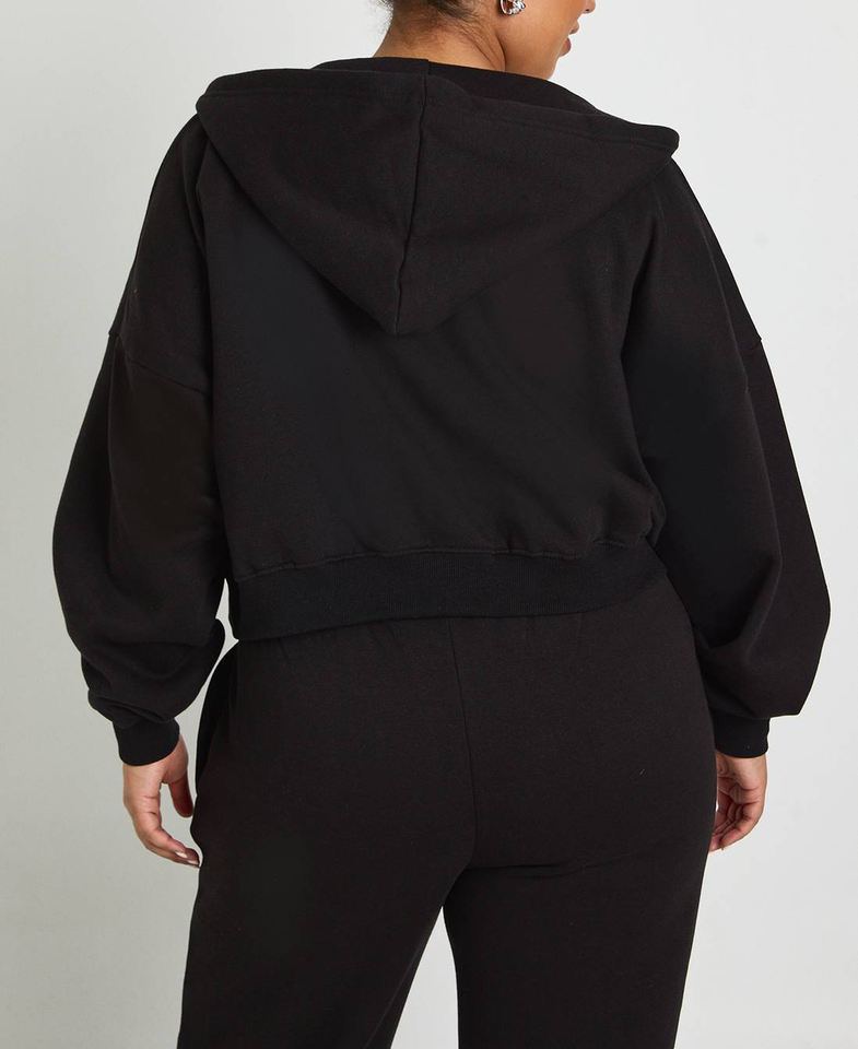 Custom Logo Embroidery Printing for Women Wholesale Eco-Friendly Hooded Heavyweight Thick Fleece Solid Black Winter Streetwear