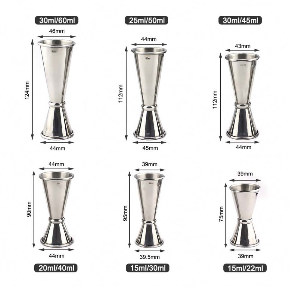 30/60ml(1/2oz), 15/22ml, 15/30ml, 20+40ml, 25+50ml, 30/45ml.
