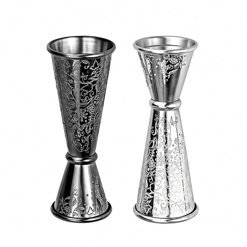 Custom Logo Engraved Pattern Color Plated SS304 Stainless Bar Cocktail Jigger Wine Measuring Metal Ounce Cup for Mixologist Set