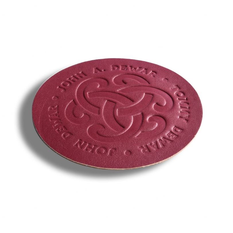 Custom Logo Exquisite Round Red Embossed PU Leather Cup Beer Tea Coffee Drink Coasters