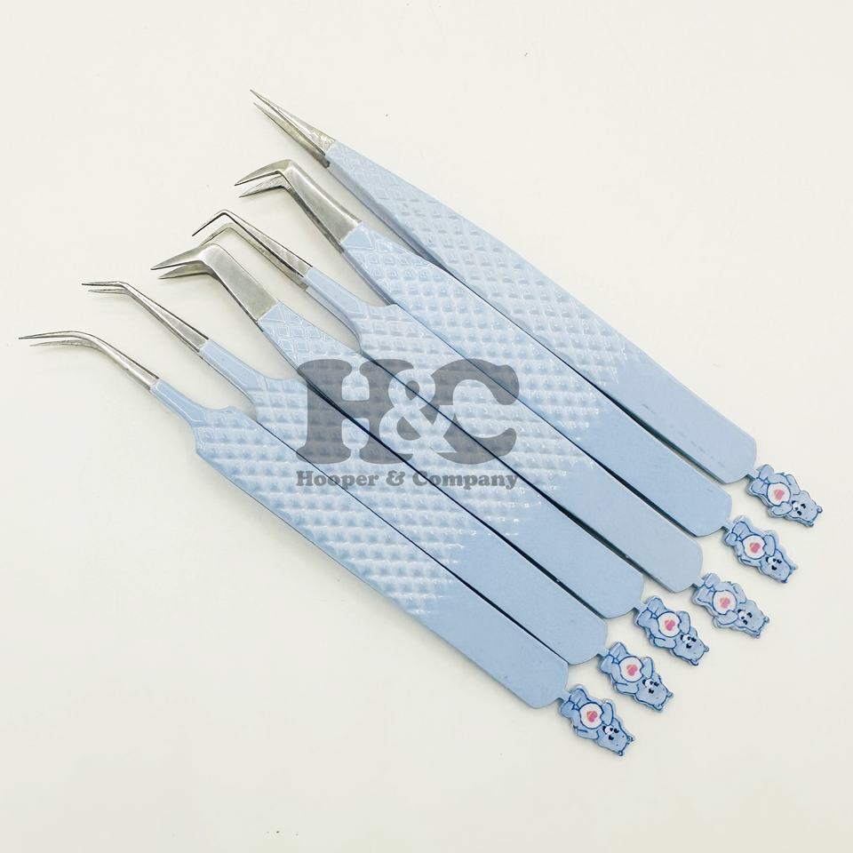 Custom Logo Eyelash Tweezers Care Bear Light Blue Sustainable Tested Pointed Tip Lash Extension Tweezers Top Regular Sale mink