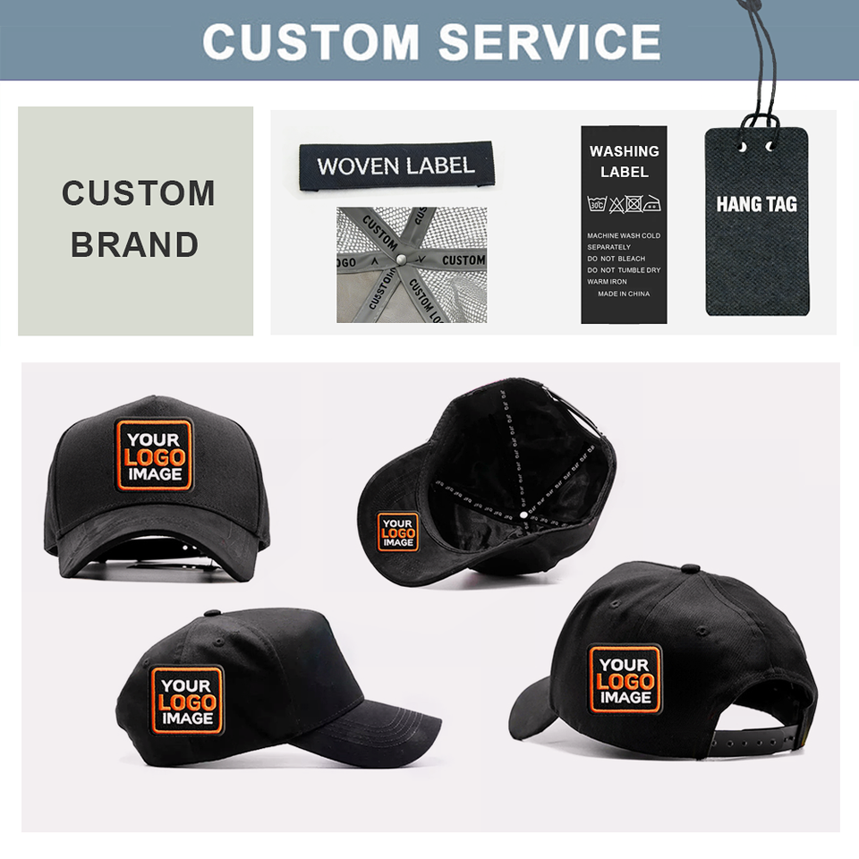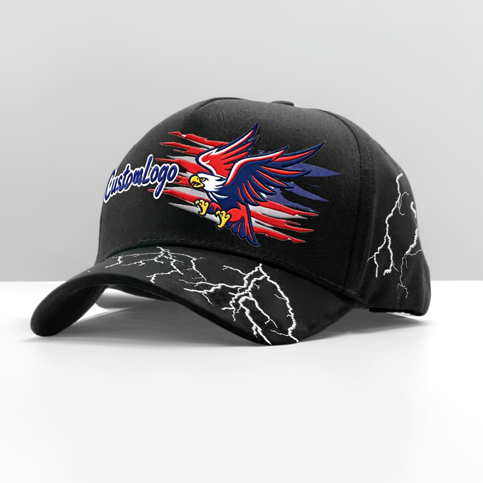 Logo position:brim/visor, front panel, Left panel, Right Panel, back curved part