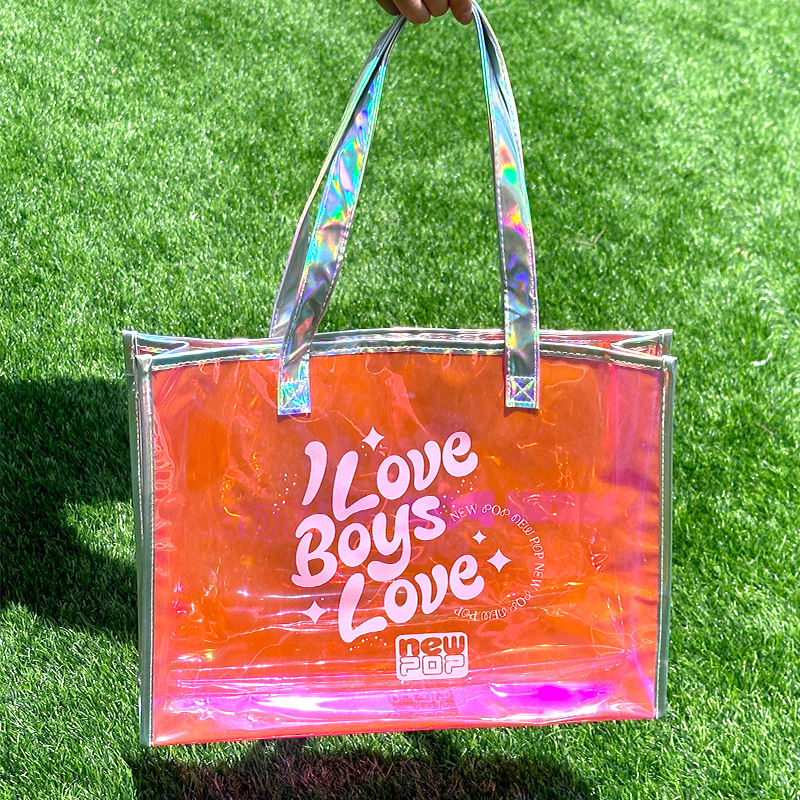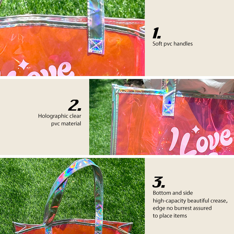Custom Logo Fashion Hologram Waterproof Pink PVC Tote Bag Clear Handbag Holographic Iridescent Shopping Bag