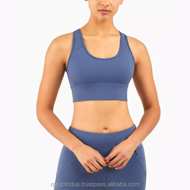 Custom Logo Female Shock Absorption Gathered Cross Sexy Back Bra Underwear High Strength Support Nude Sense of Sports