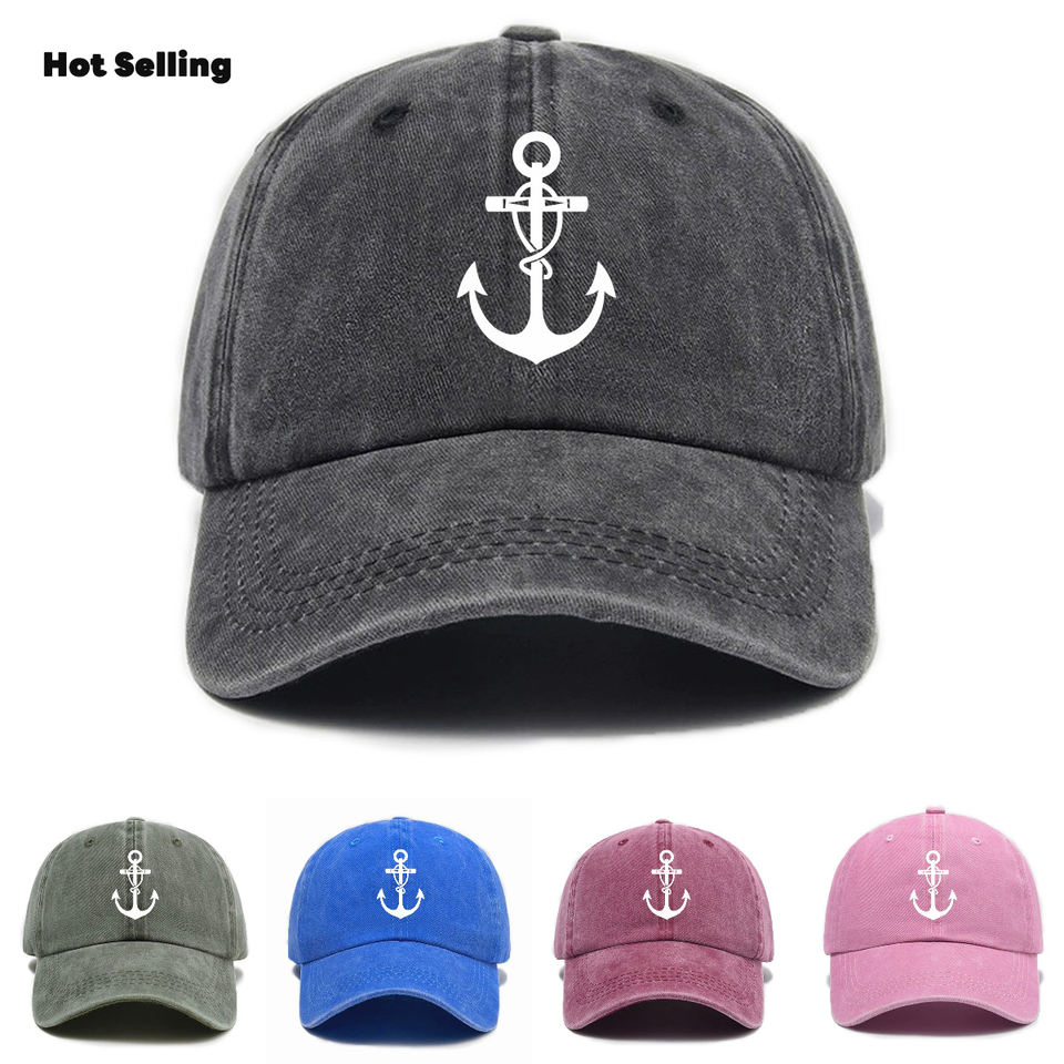 Custom Logo Fish Hook Printing Baseball Caps Vintage Distressed Plain Cap Unisex Washed Cotton Baseball Caps