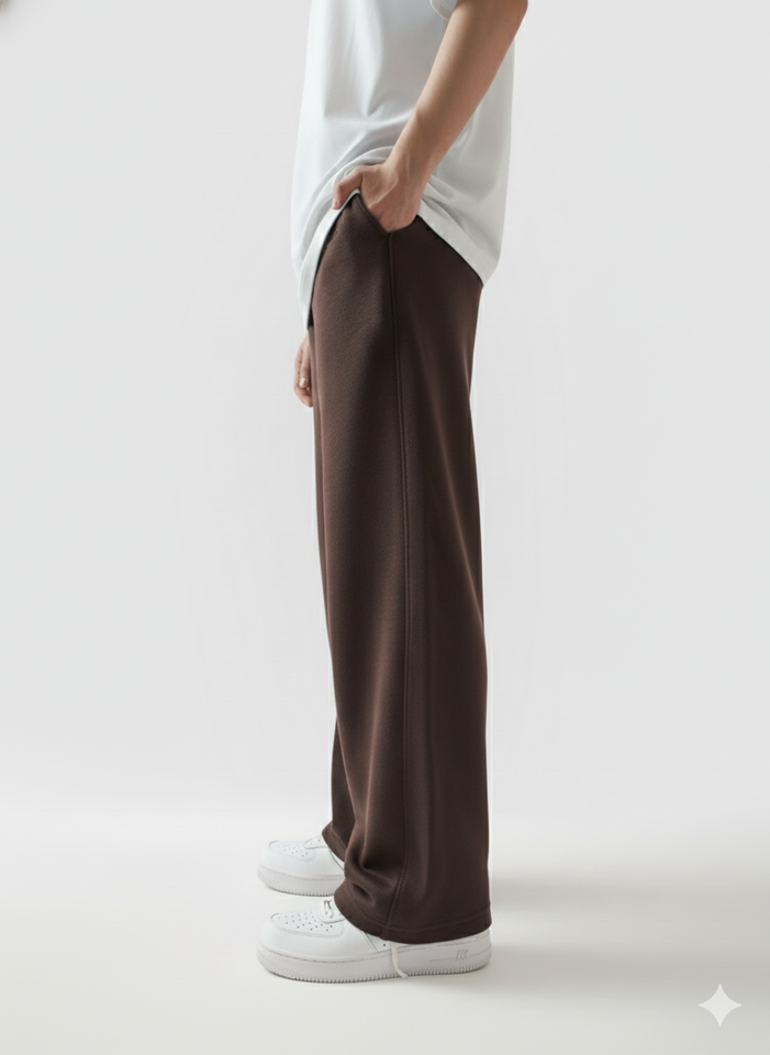 Custom Logo Flat Formal Men's Trouser High Waist Zipper Fly Breathable Cotton/Polyester Blend Baggy Loose Fit Premium Flare