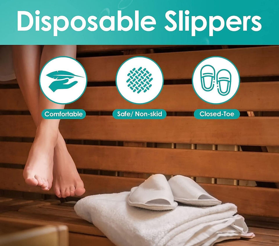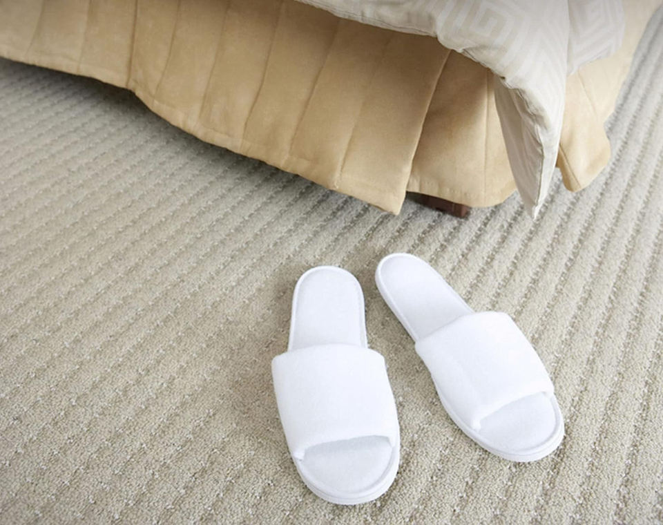Custom Logo Fleece Hotel Supplies Open Toe Disposable White Hotel Amenities-Slippers for Guest Bedrooms