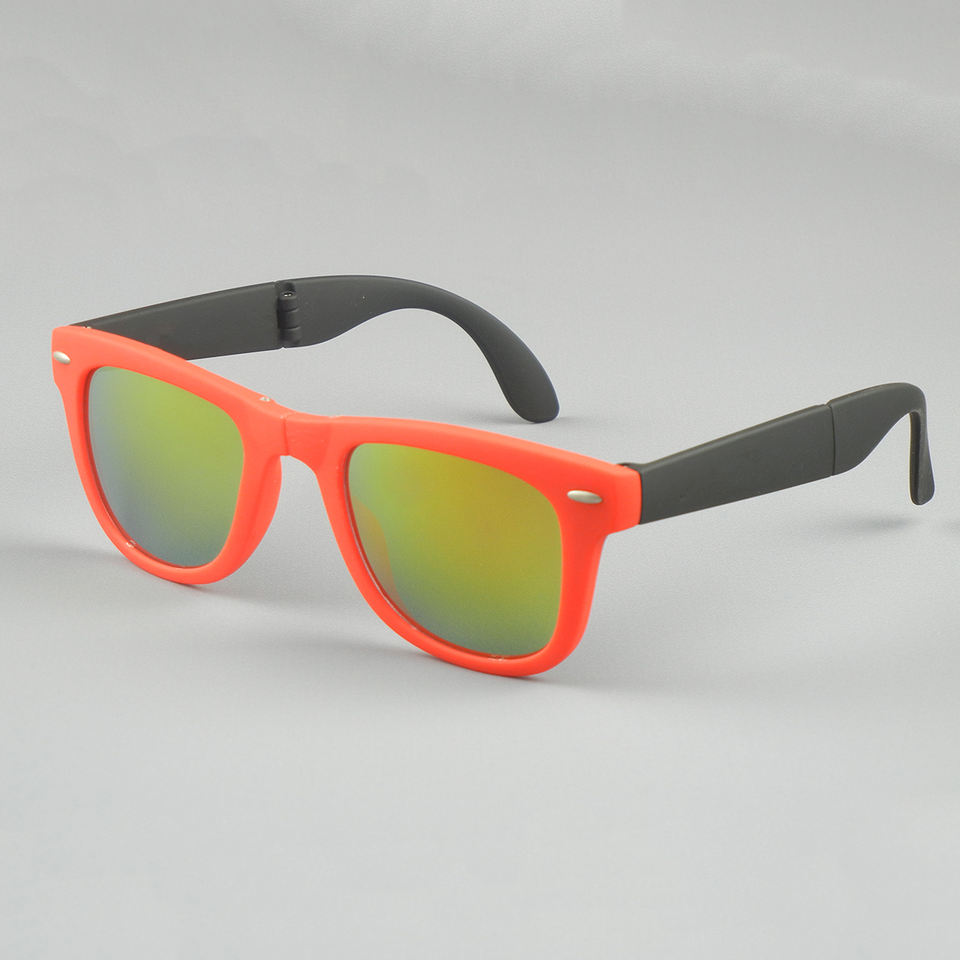 Custom Logo Foldable Square Sunglasses New Fashion Two Tone Black Red Lens Promotional Gift Yellow Purple Blue PC Frame Colors