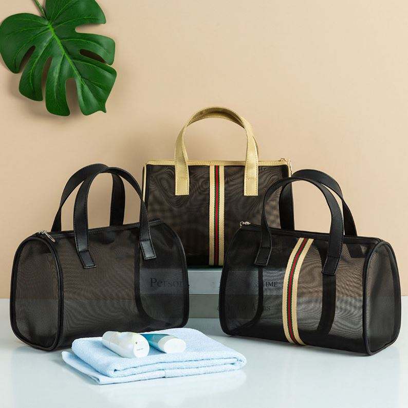 Custom Logo Foldable Travel Makeup Bag Portable Transport Mesh Zipper Pouch Cosmetic Bag for Women