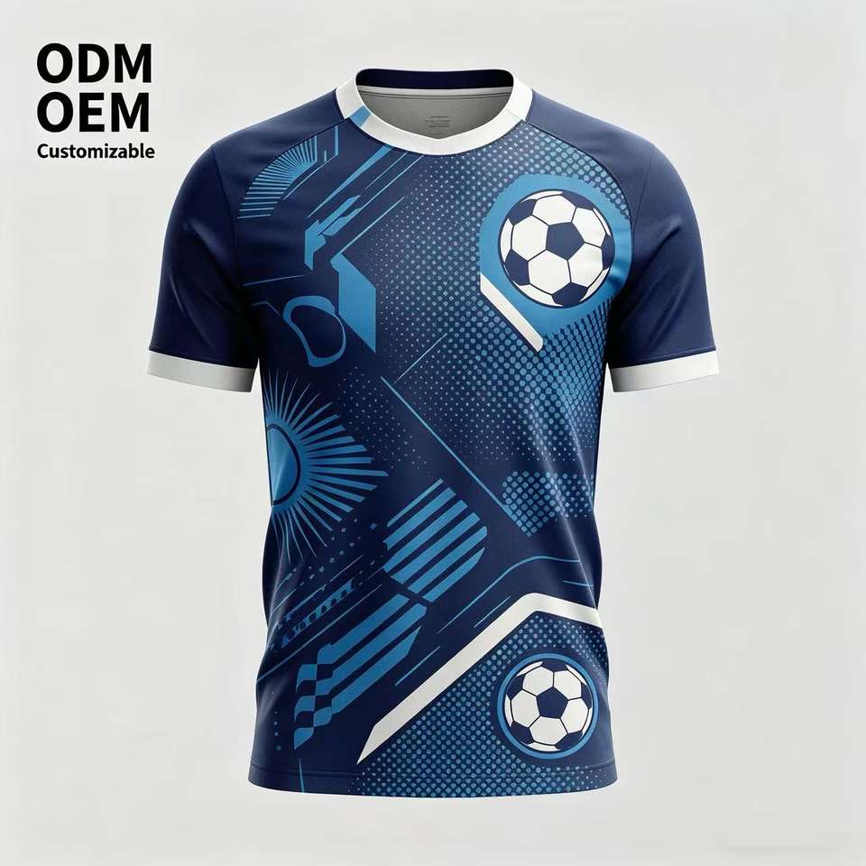 Custom Logo Front Printed Breathable Quick Dry Short Sleeve Heat-Transfer Printed 100% Polyester T-Strap Football Jersey Soccer