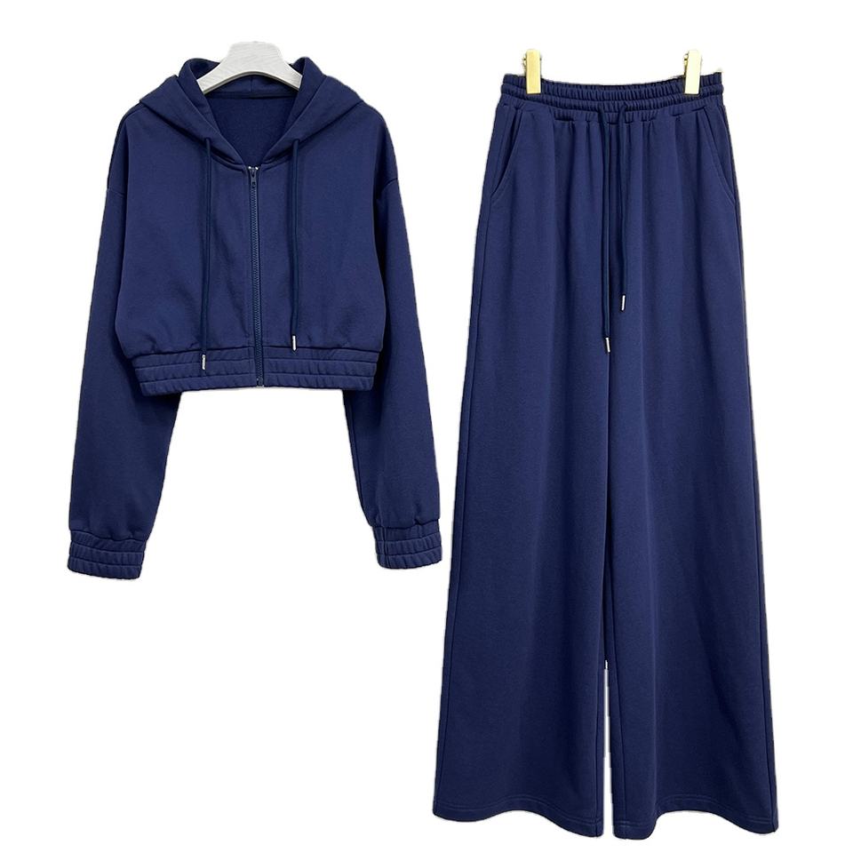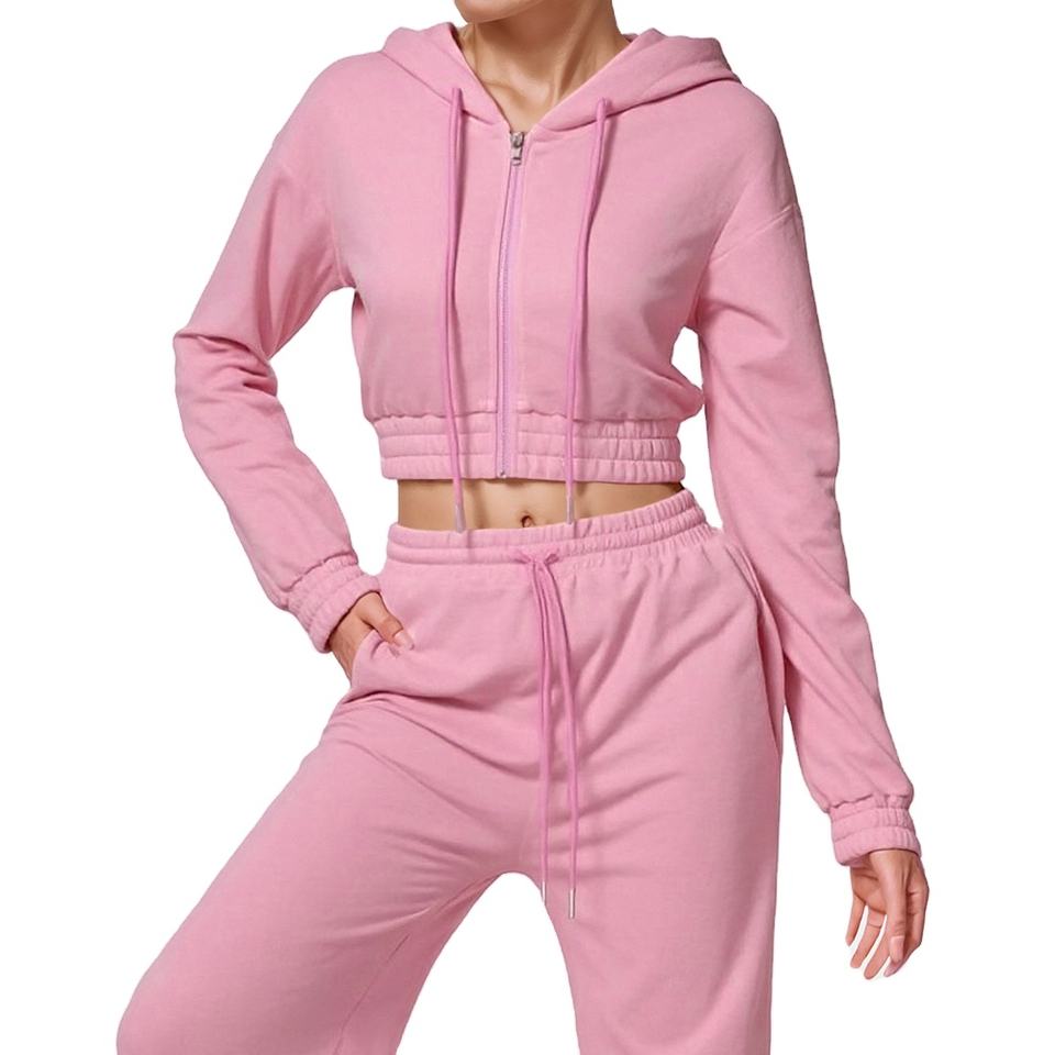 Custom Logo Full Zip up Women Sportswear Joggers Set Zipper Crop Top Hoodie Set Women's 2 Piece Fitness Joggers Clothing Set