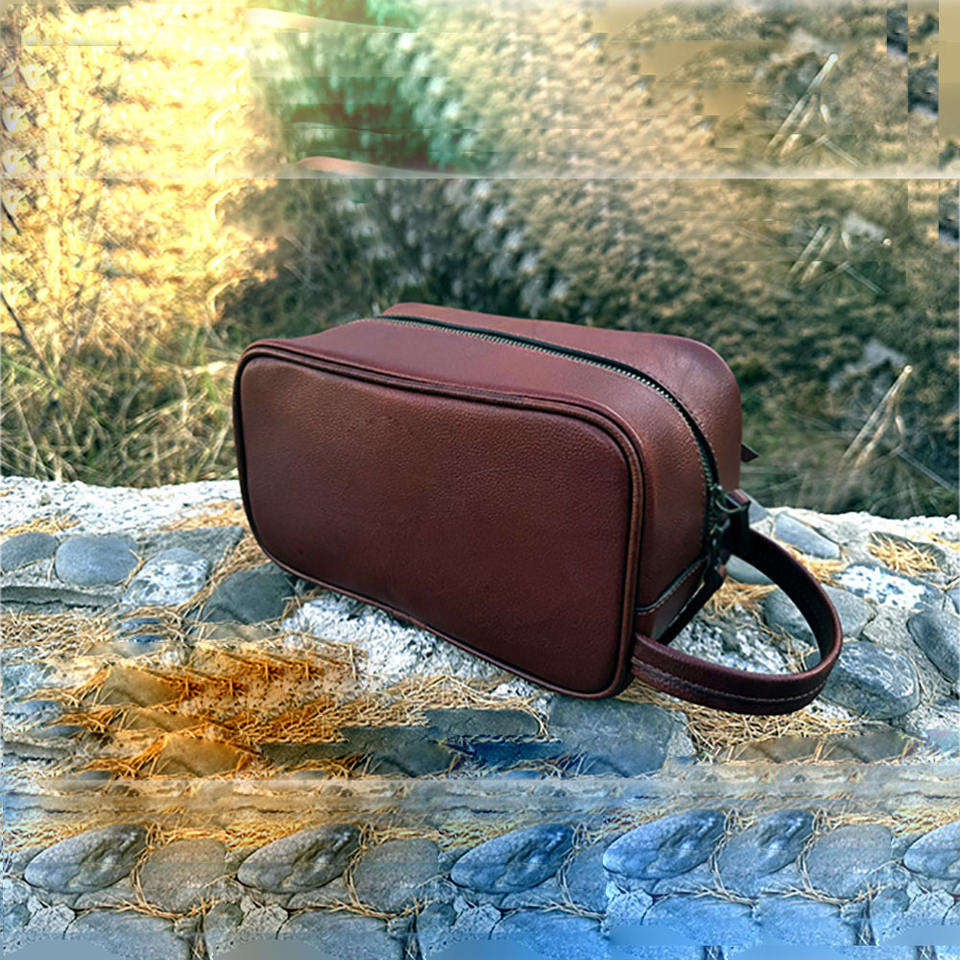 Custom Logo Genuine Buffalo Leather Wash Bag Unisex High-Class for Toiletry Travel Kit for Office Party Fashion Style Unmatched