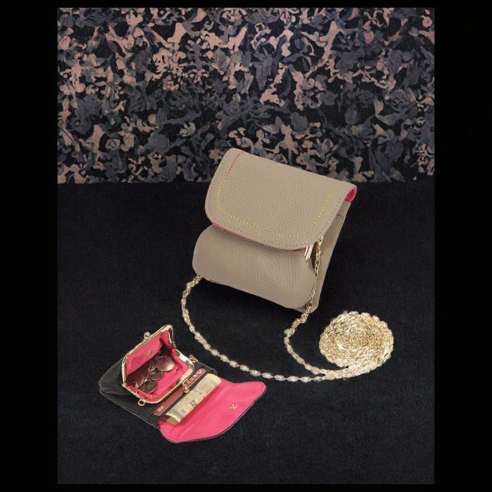 Custom Logo Genuine Cowhide Leather Chain Coin Purse Large Capacity Gold Mini Bag Fashionable Coin Storage for Women