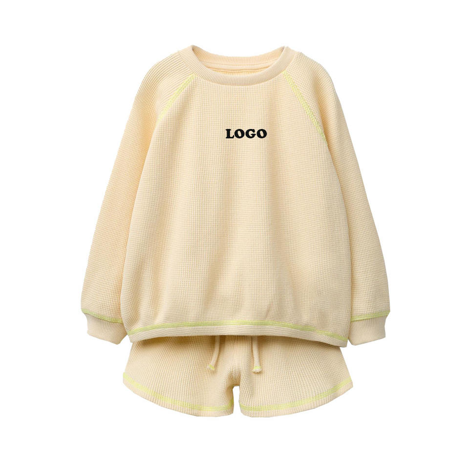 Custom Logo Girls Clothing Toddler Kids Short Sets Waffle Texture Cotton Baby Clothing Sets Summer Clothes Wholesale Best Price