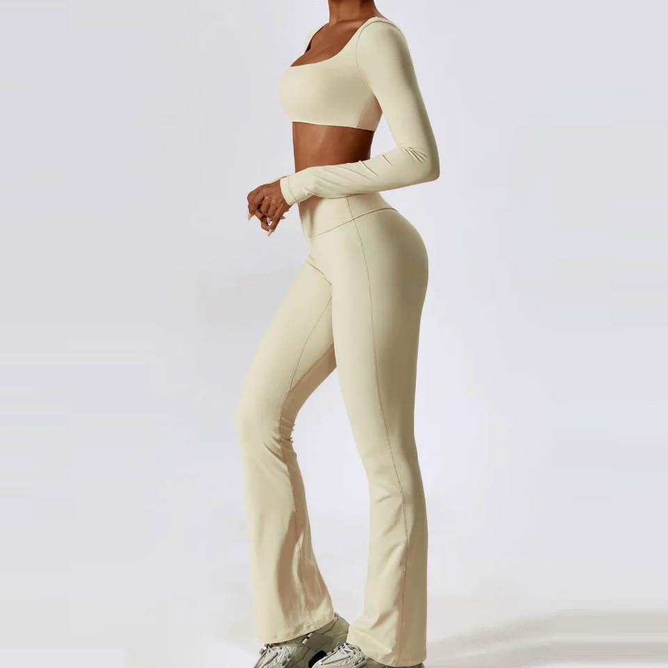 Custom Logo Girls Popular Yoga Activewear Set Fitness Butt Lift Gym Wears for Women Flare Pants Yoga Sets for Girls
