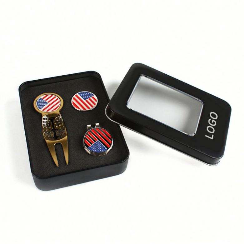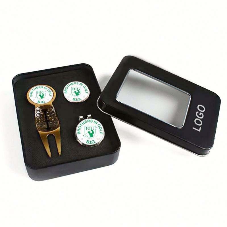 Custom Logo Golf Accessory Set with Ball Marker Divot Tool Hat Clip Tee for Father's Day Business Events or New Year