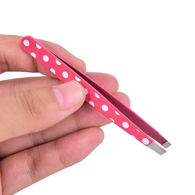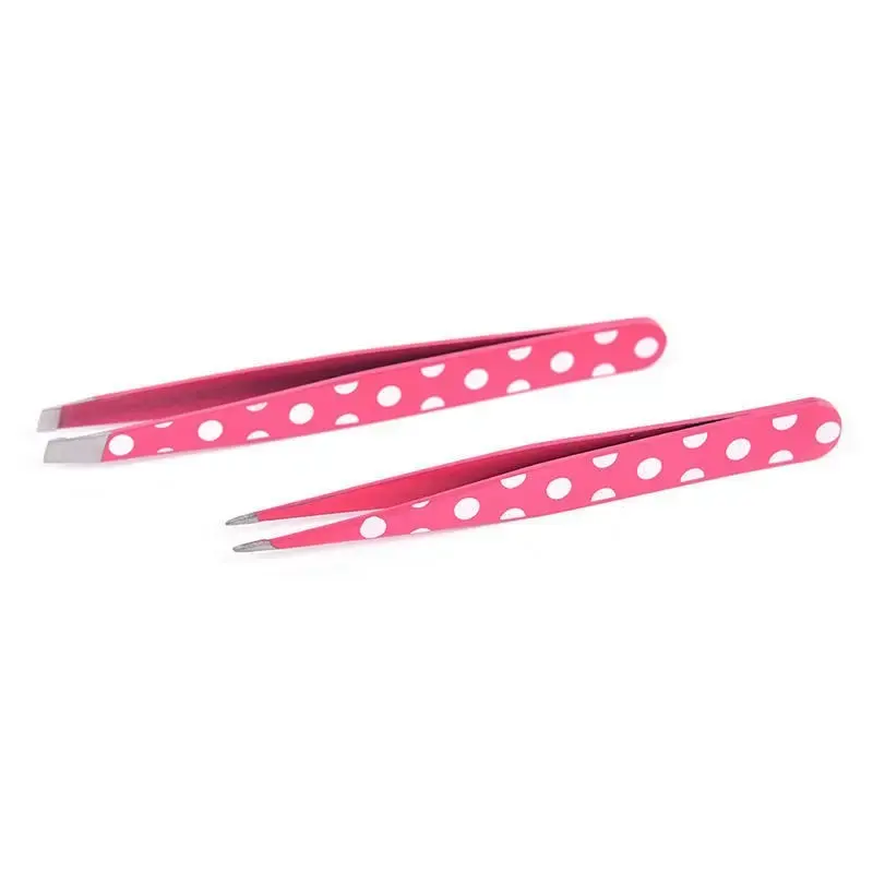 Custom Logo Grayrocks Beauty Stainless Steel Slanted Eyebrow Tweezers Eyelash Extension Tools Pink Dots Coating Different Colors
