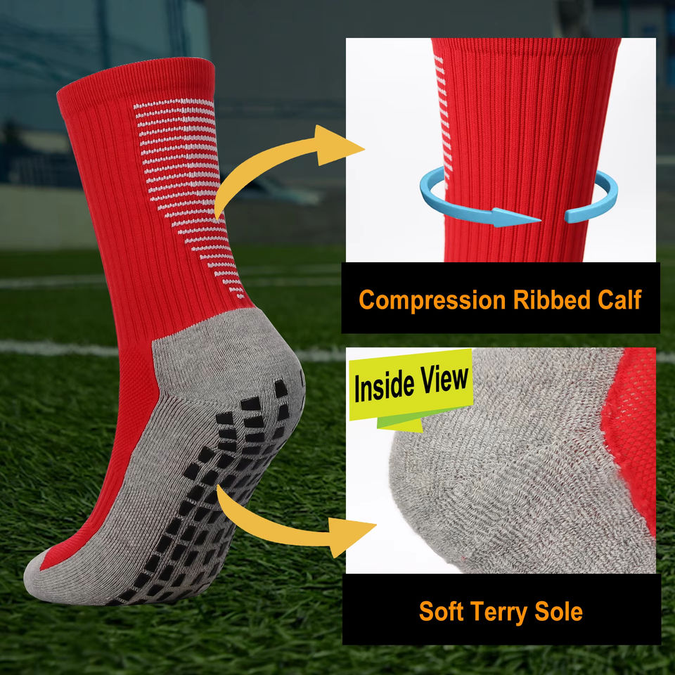 Custom Logo Grip Non-Slip Breathable Spandex/Polyester/Cotton Men's Winter Sports Football Socks