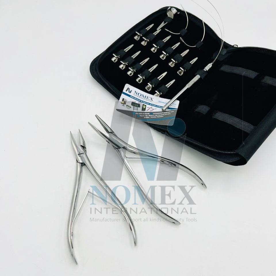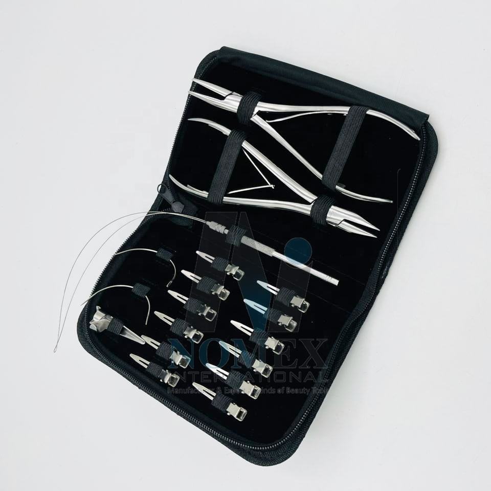 Stainless Steel Silver Polished Professional Hair Extension Tools Kit Flat Pliers Metal Clips C-Type Needles Sustainable Hair