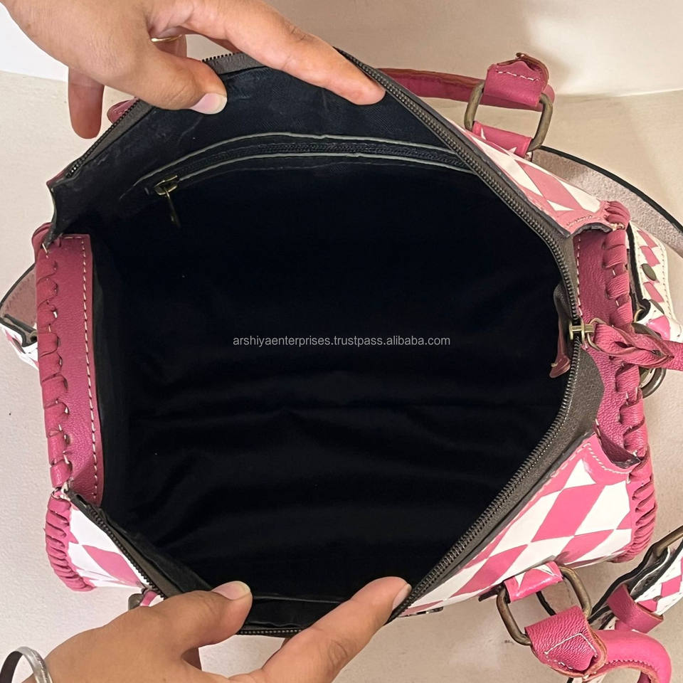 Product name:Hand Tooled Checkered Leather Medium Speedy Bag