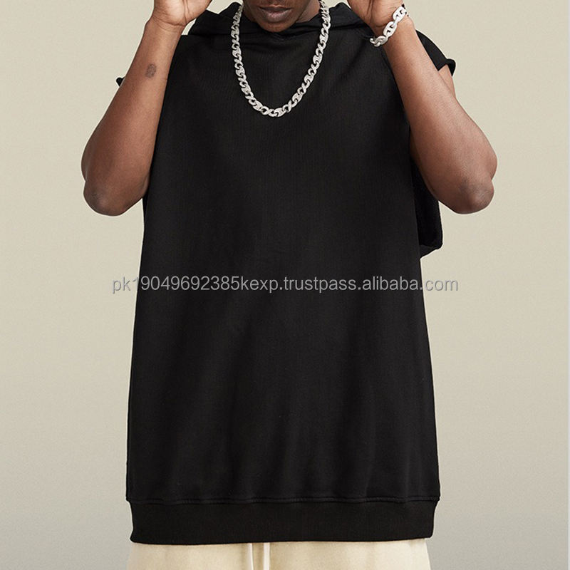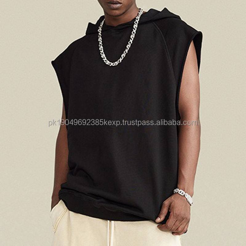 Custom Logo Heavyweight 300-500GSM Oversized 100% Cotton Graphic 3D Puff Printing Sleeveless Hoodie Men's Hoodies & Sweatshirts
