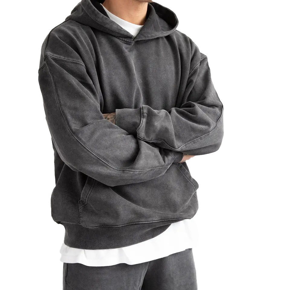 Custom Logo Heavyweight French Terry Cotton Sweatshirt Men's Unisex Oversized Streetwear Hoodie Blank Washed Long Length