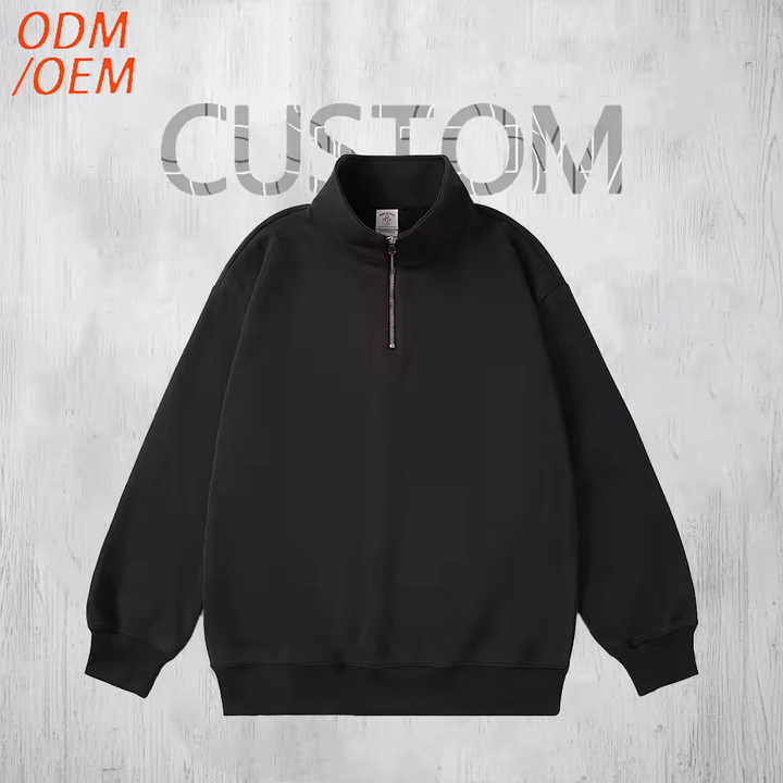 Custom Logo High Neck With Zipper Streetwear Men's Sweatshirts Quarter-Zip Hoodies for Streetwear and Gym Wear