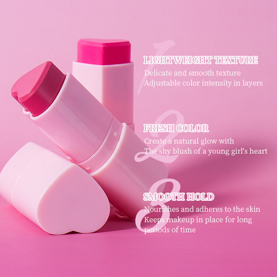 Custom Logo High Pigment Waterproof Heart Shaped Blush Stick Long-Lasting Matte Cream Soft Mineral Face Fair Skin Tone Daily