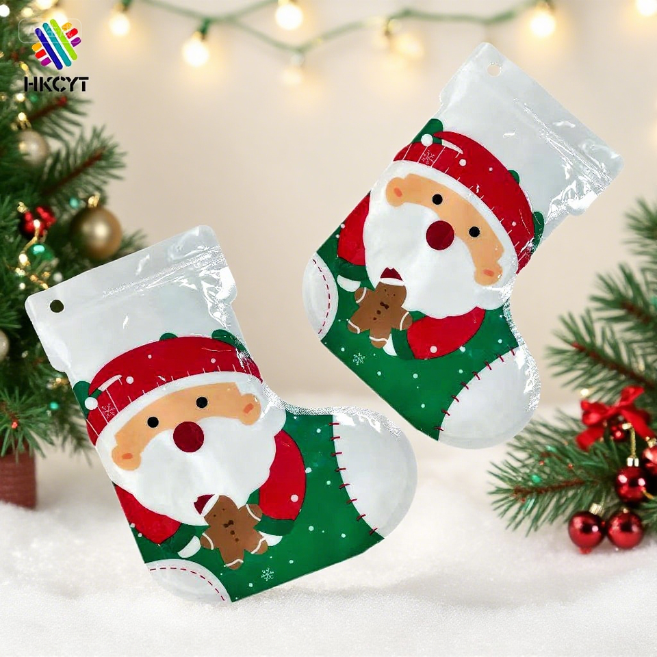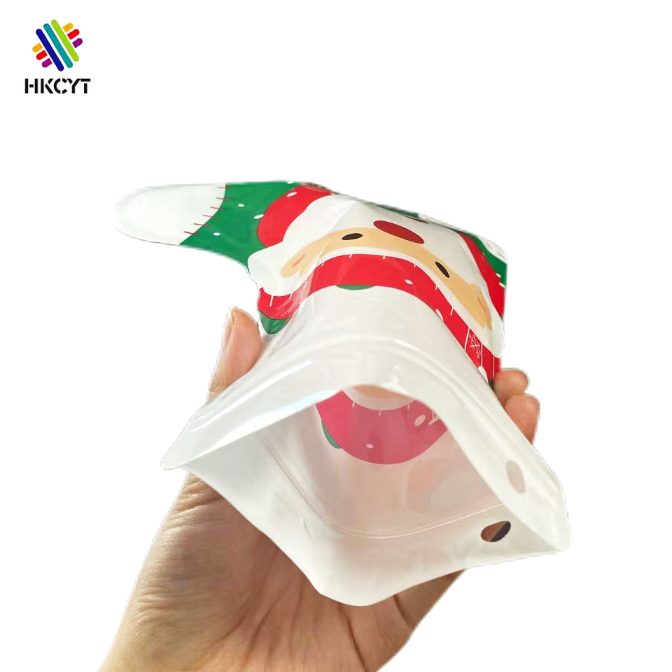 Custom Logo High Quality Aluminum Foil Christmas Gift Plastic Bags Reusable Three Side Heat Sealed Christmas Free Shaped Pouch