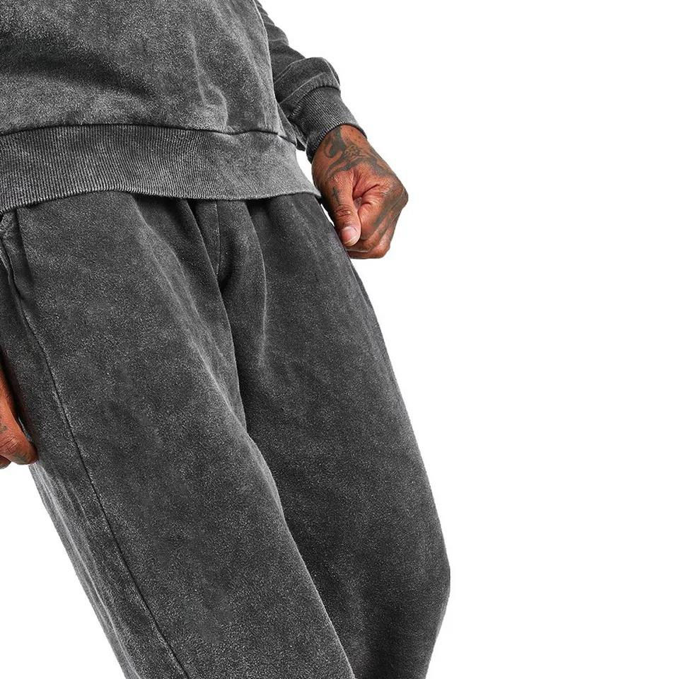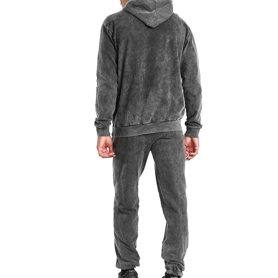Custom Logo High Quality French Terry Embroidery Heavyweight Streetwear Sweatpants Hoodie Jogger Set Zip-Up Acid Wash Winter