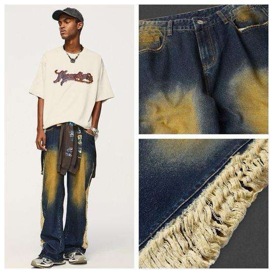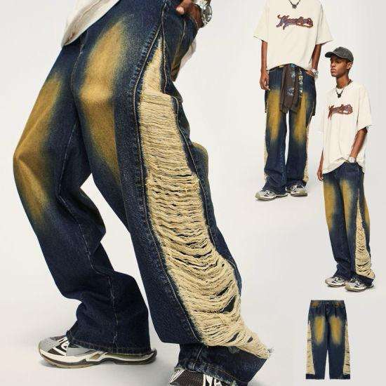 Custom Logo High Waist Straight Leg Trousers Loose Fit Work Pants Denim Stack Jean Baggy Cargo Wide Leg Pants