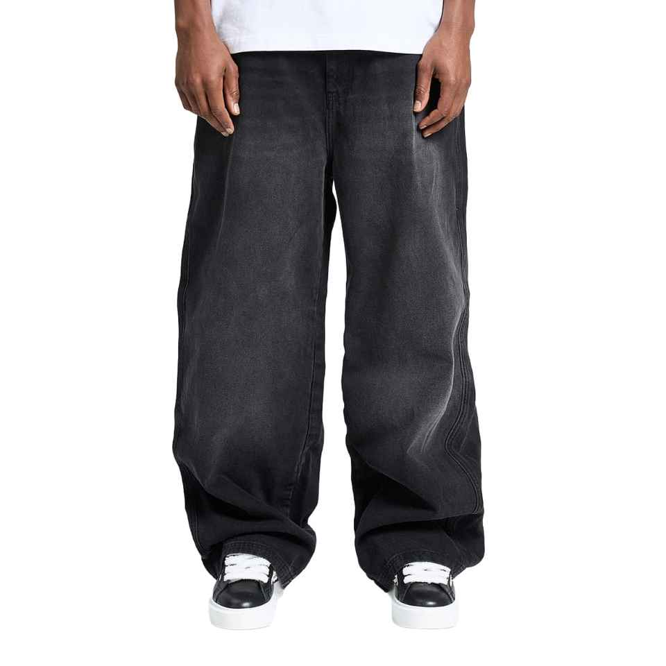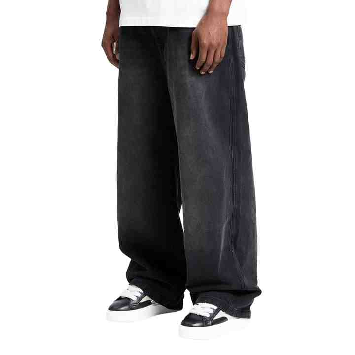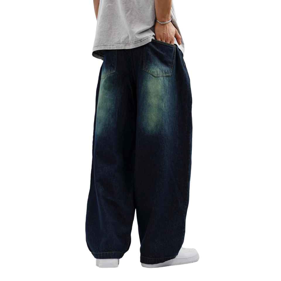 Custom Logo High Waist Washed Vintage Men's Jeans Wash Blank Heavyweight Wide Leg Denim Pants Men's Baggy Jeans for Men