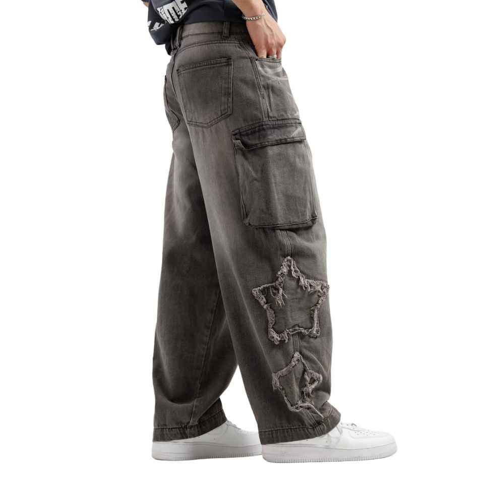 Custom Logo High Waist Washed Vintage Men's Jeans Without Wash Blank Heavyweight Wide Leg Denim Pants Baggy Jeans for Men