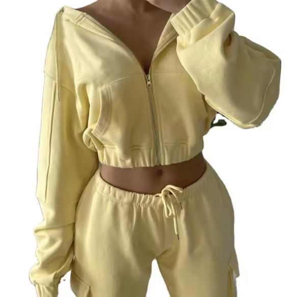 Custom Logo Hooded Casual Solid Sportswear Workout Fitness Fleece Plus Size Sweatshirt Sweatpants Jogger Sets for Women Spring
