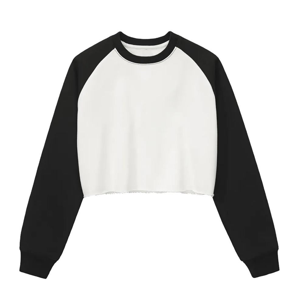 Custom Logo Hoodie 100 Cotton 360GSM Cropped T-Shirt for Women Long Raglan Sleeve Loose Fit Plain Dyed Blend Terry Sweatshirt