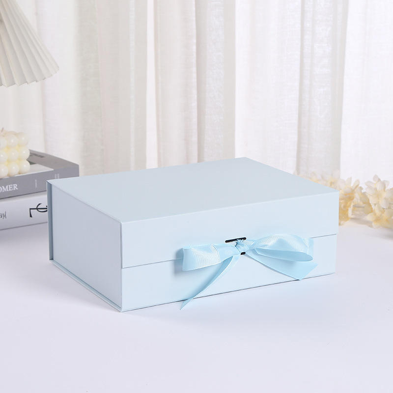 Custom Logo Ivory Board Rigid Magnetic Gift Box Clothing Shoe Packaging Cardboard Box Foldable Paper Box with Ribbon Bowknot