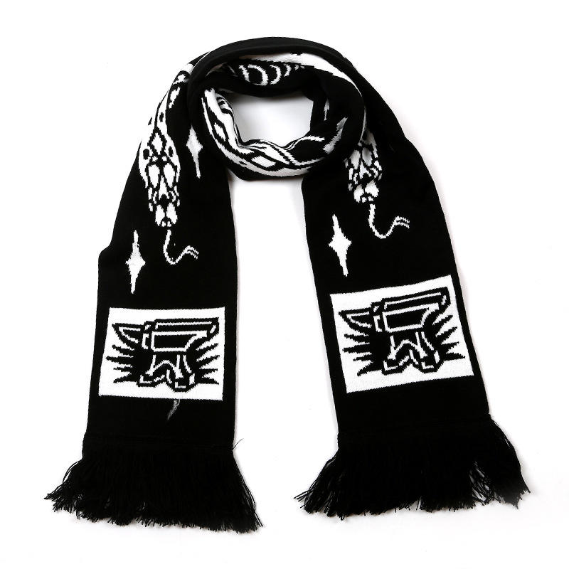 Custom Logo Jacquard Knitted Acrylic Square Scarves Plain Winter Wear for Women and Men New Design Football Fans