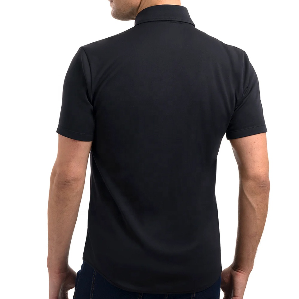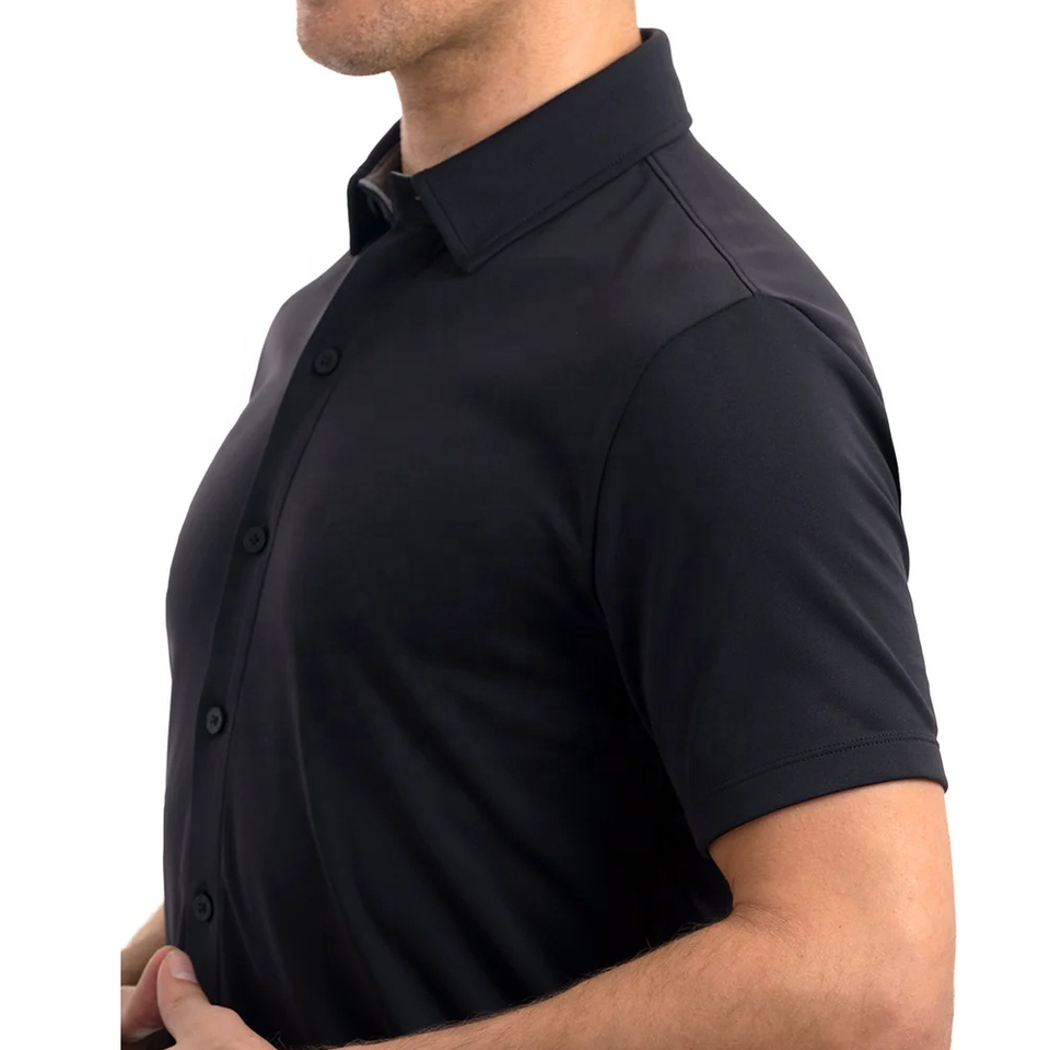 Custom Logo Knitted Blank Polyester Moisture Wicking Quick Dry Performance Casual Short Sleeve Button Down Shirt