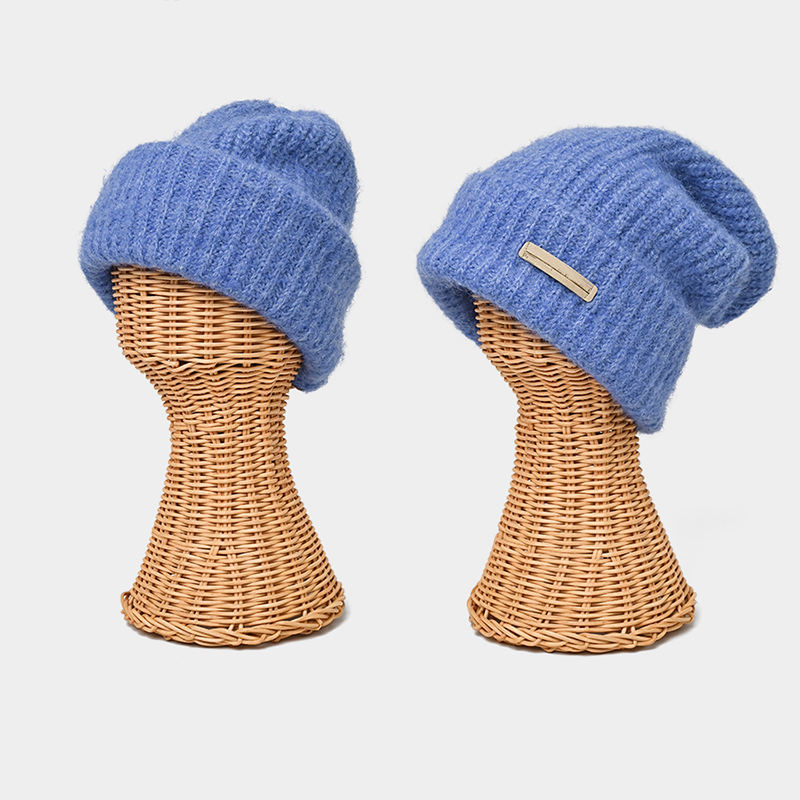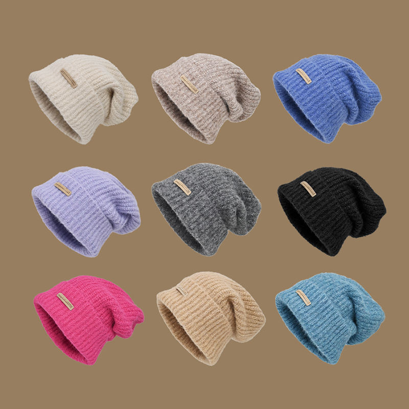 Custom Logo Korean Version Winter Hat Thick Solid Color Knit Hat for Men Women Plush Warm Outdoor Cycling Letter