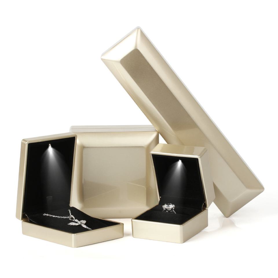 Custom Logo LED Light Luxury Plastic Wedding Ring Pendant Jewellery Box Square Rectangle Luxury Lacquered Jewelry Packaging