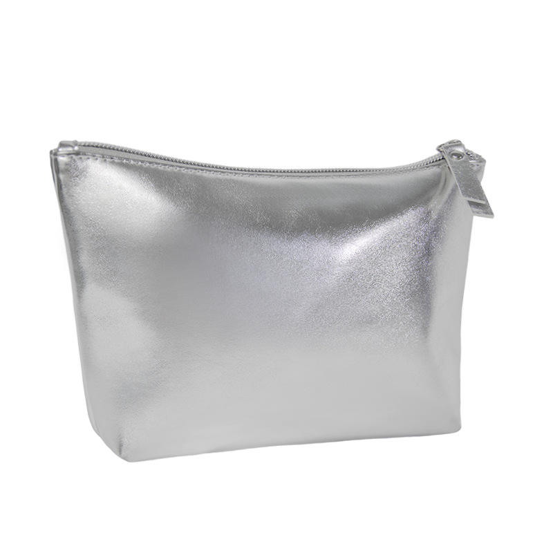 Custom Logo Gold Ladies PU Leather Toiletry Bag Waterproof Zipper Makeup Pouch Women Silver Cosmetic Bag