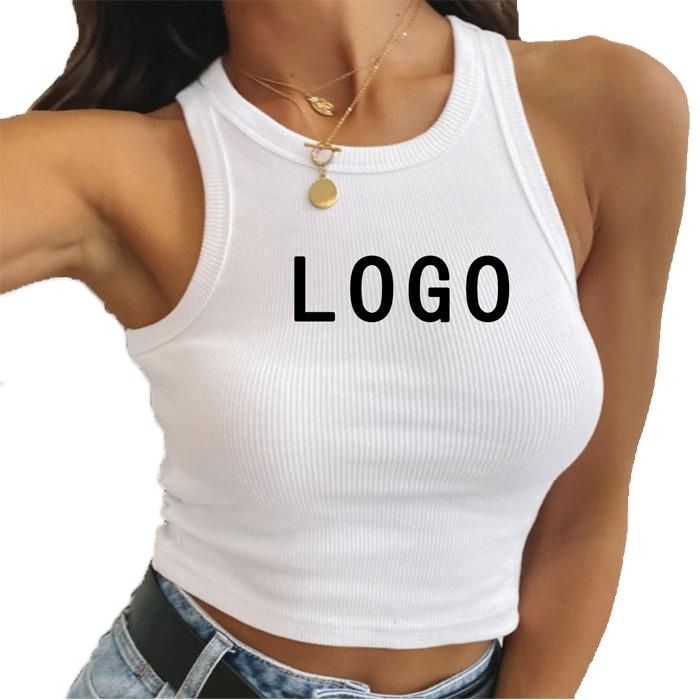 Custom Logo Ladies Vest White Cotton Ribbed Women's Crop Tank Top Fitness Sports wears Sleeveless Women's Yoga Tops